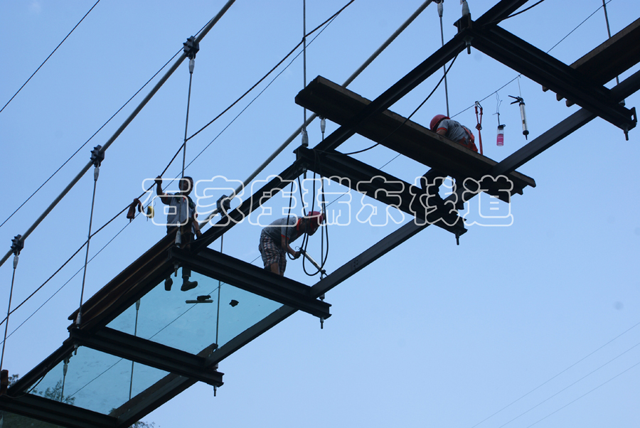 施工中的玻璃吊橋